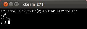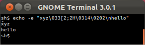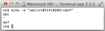 * We earlier wrote that this misbehaving sequence "crashes" the OS X Terminal.app. This was mistaken—instead, Terminal.app interprets the escape sequence as shutting off keyboard input, and because of an unrelated bug in Terminal.app, it is not possible for the user to restore keyboard input by resetting the terminal from the menu.